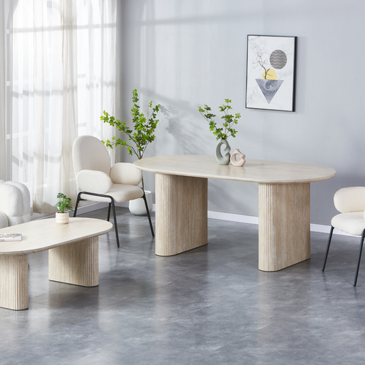 Esstisch + Couchtisch Set mit Keramikplatte Sandfarben