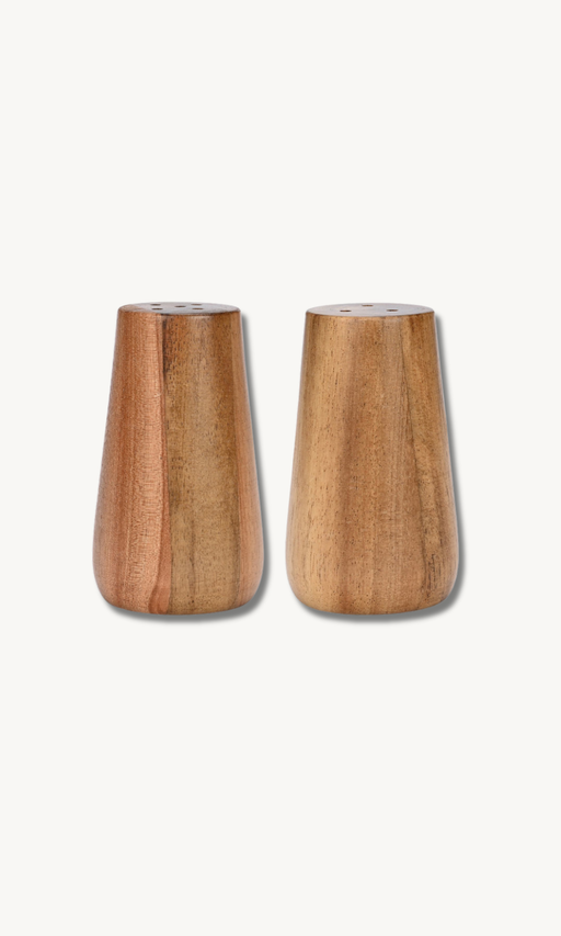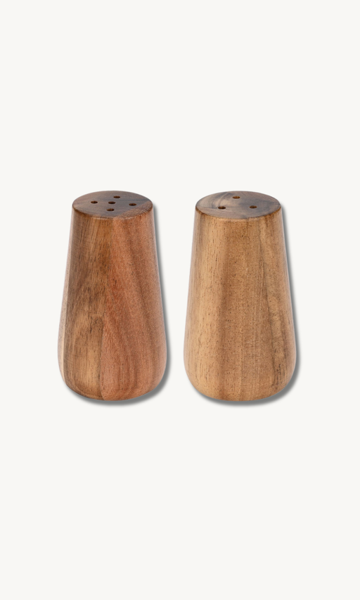 Details : Höhe: ca 8cm Durchmesser: ca 4,6cm Material: Akazie Lieferumfang: 1 Salzstreuer, 1 Pfefferstreuer
