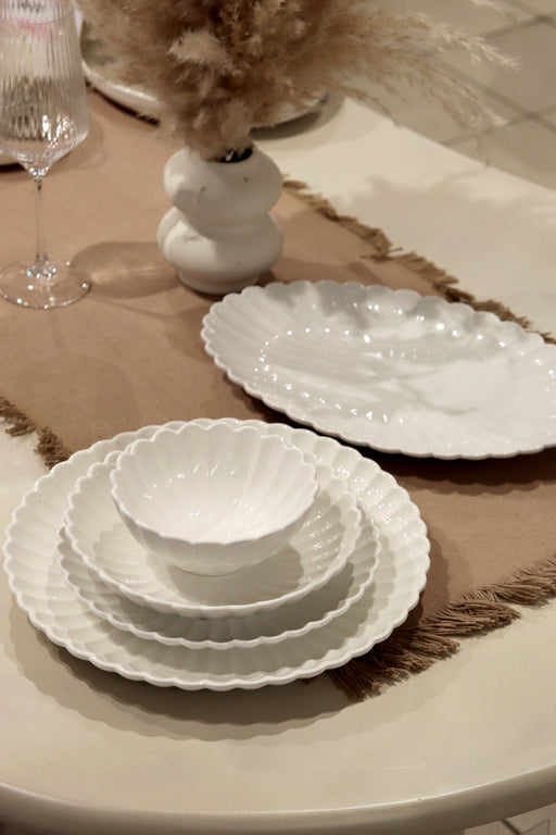 Details : 6 Servierteller Ø27cm6 Speiseteller Ø19x4cm6 Kuchenteller Ø21cm6 Schüsseln Ø13x6cm1 Servierplatte 31X21cm Material : Porzellan Bei diese...