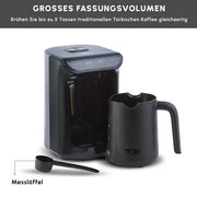 - Dank des speziellen Messlöffels können Sie leicht die Kaffeemenge bestimmen, um einen schön schaumigen türkischen Kaffee zuzubereiten