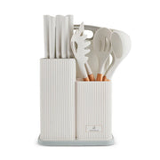Das Karaca Massimo Messer-, Besteck- und Schneidebrett-Set, bestehend aus 12 Teilen, ist ein professionelles Küchen-Set, das Ihre Kochkünste verbessern wird. Mit seinem eleganten Ständer ist es vielseitig einsetzbar und umfasst 5 Messer, 5 Servierutensilien und ein Schneidebrett. Die scharfen Messer sind aus rostfreiem Edelstahl gefertigt und behalten ihre Schärfe über viele Jahre hinweg. Um eine lange Lebensdauer zu gewährleisten, wird empfohlen, die Teile von Hand zu waschen.